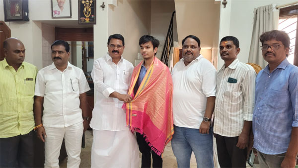 ప్రతిభ కనబర్చిన విద్యార్థికి మాజీ మంత్రి సన్మానం