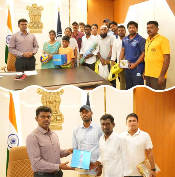 కబడ్డీ క్రీడాకారులకు క్రీడా పరికరాలు అందజేసిన కలెక్టర్ అరుణ్ బాబు..