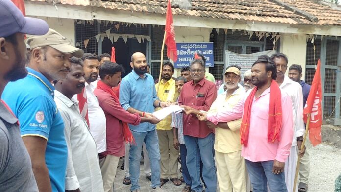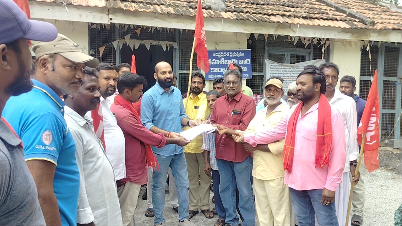 న్యూస్ తెలుగు/వినుకొండ : వినుకొండ పట్టణంలో సిపిఐ ఎం. ఎల్ లిబరేషన్ పార్టీ ఆధ్వర్యంలో సోమవారం ఎమ్మార్వో ఆఫీస్ వద్ద ధర్నా జరిగింది. ఈ ధర్నాలో వినుకొండ పట్టణ కార్యదర్శి ఎస్కె ఫిరోజ్, మండల కార్యదర్శి ధూపాటి నాని అధ్యక్షత వహించారు. వినుకొండ పట్టణంలోని 212 సర్వే నెంబరు 175 సెంట్లు సీలింగ్ ల్యాండ్ ని ఆనాటి ఎమ్మెల్యే బొల్లా బ్రహ్మనాయుడు తప్పుడు రికార్డులను సృష్టించి అక్రమ రిజిస్ట్రేషన్ చేయించడం జరిగింది. అక్రమ రిజిస్ట్రేషన్ వెంటనే రద్దు చేయాలని డిమాండ్ చేశారు. అలాగే సిపిఐ ఎంఎల్ ఏ పల్నాడు జిల్లా కార్యదర్శి తోట ఆంజనేయులు మాట్లాడుతూ. 1976 సంవత్సరంలో ఫీలింగ్ వ్యక్తి కింద గోనుగుంట్ల వెంకటేశ్వరరావు 1 75 సెంట్లు ప్రభుత్వానికి తప్పు చెప్పడం జరిగింది. సర్వేనెంబర్ 212 ఆ తర్వాత ఒక ఎస్సి కి డీకే పట్టా ప్రభుత్వాలు ఇవ్వడం జరిగింది. ఆ ఎస్సీ నీ బెదిరించి డబ్బు ఆశ చూపి ప్రముఖ కాంట్రాక్టర్ రిజిస్ట్రేషన్ చేయించుకోవడం జరిగింది. బ్రహ్మనాయుడు ఎమ్మెల్యే అయిన తర్వాత 15 కోట్ల రూపాయలు విలువ చేసే ఆ భూమిని మీరు కంపెనీ పేరు తోటి అధికారాన్ని అడ్డం పెట్టుకొని రిజిస్ట్రేషన్ చేసుకోవడం జరిగింది. రెవెన్యూ ఆక్ట్ ప్రకారం సీలింగ్ ల్యాండ్ ని ఎవరు అమ్మకూడదు కొనకూడదు ఈ మొత్తం సమాచార చట్టపకారం డాక్యుమెంట్లు తీసుకొని కలెక్టర్ కి, ఆర్డిఓ కి, ఎమ్మార్వో కి, స్థానిక శాసనసభ్యులు జీవి ఆంజనేయులు కి నెలరోజుల క్రితమే అర్జీ ఇవ్వటం జరిగింది. ఈనాటి వరకు ఎలాంటి చర్యలు తీసుకోపోగా సోమవారం లిబ్రేషన్ పార్టీ ఆధ్వర్యంలో ధర్నా చేయడం జరిగింది. పది రోజుల్లో అక్రమ రిజిస్ట్రేషన్ రద్దుచేసి ప్రభుత్వాన్ని స్వాధీనం చేసుకోకపోతే దశలవారీగా ఆందోళన కార్యక్రమాలు చేపడతామని హెచ్చరించారు. అదేవిధంగా పట్టణంలోని అనేక ప్రాంతాల్లో ప్రభుత్వ భూములను కబ్జా చేయడానికి కొద్ది మంది ప్రభుత్వ అధికారుల సహాయ సహకారాలతో ప్రయత్నాలు చేస్తున్నారని, ఇలాంటివారిని అరికట్టాలని డిమాండ్ చేశారు. అనంతరం ఎమ్మార్వో సురేష్ నాయక్ కు అర్జీ ఇవ్వటం జరిగింది. ఈ కార్యక్రమంలో మండల కార్యదర్శి ధూపాటి నాని, పట్టణ కార్యదర్శి రైసాంగం నాయకులు కామా వెంకటేశ్వర్లు, భాస్కర్, సంఘం ప్రసాద్, ముప్పాళ్ళ ప్రసాద్, సాయిబాబా, గుంటి నాగేశ్వరరావు, పందులపాటి వెంకటేశ్వర్లు, ఎలమంద కుమార్, గొంగడి సంతోష్, వన్నూరయ్య, తదితరులు పాల్గొన్నారు.(Story : స్వాహా చేసిన భూములను ప్రభుత్వం స్వాధీనం చేసుకోవాలి )