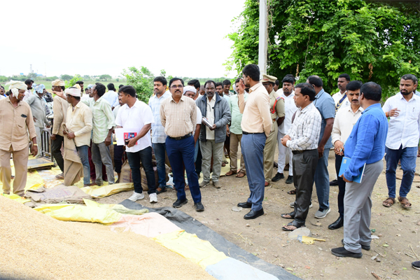 న్యూస్తెలుగు/వనపర్తి : రైతులు పండించిన ప్రతి ధాన్యపు గింజను ప్రభుత్వం ద్వారా కొనుగోలు చేయడం జరుగుతుందని రైతులు ఆందోళన పడాల్సిన అవసరం లేదని జిల్లా కలెక్టర్ ఆదర్శ సురభి రైతులకు భరోసా ఇచ్చారు. బుధవారం ఉదయం శ్రీరంగాపూర్ మండలంలోని శేరిపల్లి గ్రామంలో ఏర్పాటు చేసిన వరి కొనుగోలు కేంద్రాలను అదనపు కలెక్టర్ రెవెన్యూ జి వెంకటేశ్వర్లుతో కలిసి సందర్శించారు. ఇప్పటివరకు ఇంకా వరి కోతలు ప్రారంభించని రైతులు వెంటనే కోతలు ప్రారంభించి వడ్లను కొనుగోలు కేంద్రాలకు తరలించాలని సూచించారు. కొనుగోలు కేంద్రాల్లో అవసరమైన టార్ఫాలిన్ లు అందుబాటులో ఉన్నాయని, వర్షానికి వడ్లు తడిచిపోకుండా కప్పి ఉంచాలని తెలియజేశారు. లారీల కొరత లేదని, తేమ శాతం 17 వరకు ఉన్నా వెంటనే తూకం వేసి లారీల్లో ఎక్కించాలని కొనుగోలు కేంద్రాల నిర్వాహకులను ఆదేశించారు. హమాలిల కొరత లేకుండా చూసుకోవాలని ధాన్యం తరలింపు వేగంగా జరగాలని సూచించారు. ఒక్క శేరిపల్లి గ్రామానికి , ఒకేరోజు 10 లారీలు పెట్టడం జరిగిందని, అవసరమైతే ఇంకొన్ని లారీలు సమకూర్చుతామని రైతులకు భరోసా కల్పించారు. నైరుతి రుతుపవనాలు రాష్ట్రానికి 15 రోజులు ముందుగా రావడం వల్ల రైతులు కొంత ఇబ్బందులకు గురవుతున్నారని, ఈ వాతావరణ మార్పు కు అనుగుణంగా రైతులు సైతం పంట కోతలు త్వరగా ప్రారంభించి కొనుగోలు కేంద్రాల్లో తూకం చేసే వరకు వడ్లు తడిచిపోకుండా టార్పాలిన్ లు కప్పి ఉంచాలని రైతులను సూచించారు. అదనపు కలెక్టర్ రెవెన్యూ జి వెంకటేశ్వర్లు, సివిల్ సప్లై అధికారి విశ్వనాథ్, శ్రీరంగాపూర్ తహసిల్దార్ రాజు, రైతులు తదితరులు కలెక్టర్ వెంట ఉన్నారు. (Story:రైతులు ఆందోళన పడాల్సిన అవసరం లేదు)