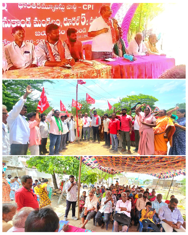 న్యూస్ తెలుగు / వినుకొండ : భారతీయ జనతా పార్టీ 2014 ఎన్నికలప్పుడు దేశంలో అధికారంలోకి వస్తే వంద రోజుల్లో సామాన్యుడు వాడుకునే నిత్యవసర సరుకులు పెట్రోల్ డీజిల్ గ్యాస్ ధరలు తగ్గిస్తామని చెప్పి అధికారంలోకి వచ్చాక ధరలు మూడు రెట్లు పెంచారని సిపిఐ పల్నాడు జిల్లా కార్యదర్శి మారుతి వరప్రసాద్ తీవ్రంగా విమర్శించారు. బుధవారం నాడు మండల కేంద్రమైన వినుకొండ నియోజకవర్గం నాగిరెడ్డిపల్లి లో జరిగిన మండల మహాసభకు కామ్రేడ్ మరియు బాబు అధ్యక్షత వహించగా ముఖ్య అతిథిగా పాల్గొనిన ఆయన మాట్లాడుతూ కేంద్రంలోనూ రాష్ట్రంలోనూ ప్రజా రంజక పాలన అందిస్తామని ఎన్నికలలో వాగ్దానాలు ఇచ్చి అధికారంలోకి వచ్చిన ప్రభుత్వాలు ప్రజలకు ఇచ్చిన వాగ్దానాలను అమలు చేయడంలో వైఫల్యం చెందాయని ఆయన అన్నారు. 2014లో అధికారంలోకి వచ్చిన బిజెపి ఇప్పటికి మూడవసారి అధికారంలోకి వచ్చి 11 సంవత్సరాలు అధికారం వెలగబెట్టి ఈ దేశానికి సాధించి పెట్టింది ఏమీ లేదని 200 లక్షల కోట్ల రూపాయలు అప్పులు మాత్రం చేసి అప్పుల భారత దేశంగా మిగిలింది అన్నారు. దేశానికి పట్టెడన్నం పెట్టే రైతన్నకు రుణాలు రద్దు చేయమంటే చేయలేరు కానీ లక్షల కోట్ల లాభాలు ధనం ఆర్జిస్తున్నటువంటి అంబానీ అదాని లాంటి కార్పొరేట్ శక్తులకు మరొక 28 మంది కార్పొరేట్ దిగ్గజాలకు గత 11 సంవత్సరాల బిజెపి పాలన లో 16 లక్షల కోట్ల రూపాయల రుణాలు మాఫీ చేశారని ఆయన తీవ్రంగా విమర్శించారు ఇది పార్లమెంటు సాక్షిగా అన్ని రాజకీయ పార్టీలకు తెలిసిన నగ్న సత్యం అని ఆయన మహాసభలో తెలిపారు. పార్లమెంటు సభ్యులకు వేతనాలు పెంచుకొనుటకు పార్లమెంట్ వేదికగా ఒక పార్లమెంట్ సభ్యునకు రెండున్నర లక్షల రూపాయలు వేతనాలు పెంచుకున్నారని, శాసనసభ్యులు ఎమ్మెల్యేలకు ఎమ్మెల్సీలకు శాసనసభ, శాసనమండలి సాక్షిగా నెలకు రెండున్నర లక్షల రూపాయలు వేతనాలు పెంచుకున్నారని దేశానికి పట్టెడ అన్నం పెట్టే రైతన్నకు పండించిన పంటకు గిట్టుబాటు ధర ఇవ్వడానికి వారికి చేతులు రాలేదని ఆయన దుయ్యబట్టారు. రైతాంగం సంవత్సరం పాటు జరిపిన మహత్తర పోరాటాల ఫలితంగా రైతు సంఘాలకు ప్రధానమంత్రి కి వ్యవసాయ మంత్రికి మధ్యలో జరిగిన చర్చలలో వ్రాతపూర్వకంగా ప్రధానమంత్రి గారు ఇచ్చిన హామీలు నీటి మూటలు అయ్యాయని ఆయన విమర్శించారు ఇంతవరకు దేశంలో ఎందరో ప్రధానులు ఆ పదవి నాలంకరించినప్పటికీని ప్రజలకు ఇచ్చిన మాటను అందులో రైతులకు ఇచ్చిన మాటను పక్కన పెట్టుటలో మోడీ గారు నంబర్ వన్ ప్రధానిగా మిగిలిపోయారని మరలా రైతాంగాన్ని రోడ్లపై పోరాటాలకు దించిన చరిత్ర ఆయనదని విమర్శించారు. కార్మికులు దశాబ్దాల పోరాటాల ఫలితంగా సాధించుకున్న కార్మిక చట్టాలను కుదించి నాలుగు లేబర్ కోడ్ లు గా విభజించి చట్టాల ను నీరుగార్చిన చరిత్ర నరేంద్ర మోడ