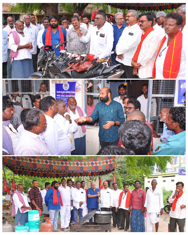 న్యూస్ తెలుగు / వినుకొండ : స్థానిక సిపిఐ ఎమ్మెల్ లిబరేషన్ పార్టీ ఆధ్వర్యంలో సోమవారం తాసిల్దార్ కార్యాలయం వద్ద మూడవరోజు వంటావార్పు కార్యక్రమాన్ని నిర్వహించారు. ఈ కార్యక్రమంలో సిపిఐ ఎమ్మెల్ లిపరేషన్ రాష్ట్ర కార్యదర్శి పార్టీ బంగారం మాట్లాడుతూ. గత రెండు నెలల నుంచి మాజీ ఎమ్మెల్యే బొల్లా బ్రహ్మనాయుడు చట్ట వ్యతిరేకంగా సీలింగ్ ల్యాండ్ భూమిని అక్రమంగా రిజిస్ట్రేషన్ చేసుకుంటే సంబంధిత అధికారులు అతనిపై సివిల్ అండ్ క్రిమినల్ కేసులు పెట్టలేదని ప్రశ్నించారు. అది సీలింగ్ ల్యాండ్ అయితేనే కదా 2007 సంవత్సరంలో ఒకే సీ పేరు తోటి డీకే నెంబర్ 134 పట్టా ఇచ్చారు కదా అది ఆయన సొంత భూమి అయితే మీరు ఎవరు పట్టా ఇవ్వటానికి అని ప్రశ్నించారు. ఈ నియోజకవర్గంలో భూస్వాములు, పెట్టుబడిదారులు, పారిశ్రామికవేత్తలు, వ్యాపారవేత్తలు ప్రభుత్వ భూములు ఆక్రమిస్తుంటే ప్రభుత్వ అధికారులు గానీ బాధ్యత కలిగిన నియోజకవర్గం ఎమ్మెల్యే ఎందుకు మౌనంగా ఉన్నారని ప్రశ్నించారు. ఎప్పటికైనా సరే బినామీ పేర్లతో ప్రభుత్వ భూముల్ని కబ్జా చేసిన భూములు పై ప్రభుత్వం పరిశీలించి వాటిని స్వాధీనం చేసుకోవాలని, లేనిపక్షంలో సిపిఐ ఎంఎల్ పార్టీ పోరాటాలు చేసి పేదలకు పంచుతుందని అన్నారు. ఎమ్మార్వో మాటలతో కాలయాపన చేస్తున్నారు తప్పితే తగిన చర్యలు ఎందుకు తీసుకోలేదని బ్రహ్మనాయుడు కి మీకు ఉన్న ఎలాంటి సంబంధం తొందరలో బట్టబయలు చేస్తామని హెచ్చరించారు. అనంతరం జిల్లా పార్టీ కార్యదర్శి తోట ఆంజనేయులు మాట్లాడుతూ. బ్రహ్మ నాయుడు ఆదివారం ప్రెస్ మీట్ లో మాట్లాడుతూ. భూమి ఉంటే తీసుకోమని ఓపెన్ గా చెబితే అది ప్రభుత్వం అని డీకే పట్టం మంజూరు చేస్తే ఎమ్మార్వో ఇవాళ ఆ భూమిని స్వాధీనం చేసుకోవడానికి ఎమ్మార్వో ఎందుకడుతున్నాడు అర్థం కావటం లేదని స్థానిక ఎమ్మెల్యే ఈ విషయం పైన మౌన పోరాటం ఎందుకు చేస్తున్నాడు అర్థం కావటం లేదని, ఎప్పటికైనా ఈ సమస్యను పరిష్కారం చేయకపోతే సంబంధిత అధికారులపై కోర్టులో కేసు వేస్తామని హెచ్చరించారు. అనంతరం ఎమ్మెల్ పార్టీ రాష్ట్ర నాయకులు ఎంపీ రాందేవ్ పాల్గొన్నారు. ఈ ధర్నా కార్యక్రమానికి ఎస్కే ఫిరోజ్ అధ్యక్షత వహించగా, సంఘీభావంగా ఎమ్మార్పీఎస్ జిల్లా నాయకులు చిన్న మాల మానాడు నాయకులు విజయ్ కుమార్, యువజన నాయకుడు సుబ్బారావు, పిడిఎం రాష్ట్ర నాయకులు వై వెంకటేశ్వరరావు తదితరులు ఈ ధర్నా కార్యక్రమానికి సంఘీభావం తెలిపారు. ధర్నా అనంతరం ఎమ్మార్వో తో చర్చ జరిగింది. ఈ 212 సర్వే నెంబర్లు గల ఈ సీలింగ్ లాంటి భూమిని జులై 30 వ తారీకు లోపు స్వాధీనం చేసుకుంటామని హామీ ఇచ్చారు. అనంతరం గణేశుని పాలెం భూ సమస్యను పరిష్కారం చేస్తారని మీరు సహకరించాలని కోరారు. పేదలు ఎవరైనా సరే ఇళ్లస్థలాలకి అర్జీలు పెట్టమని క