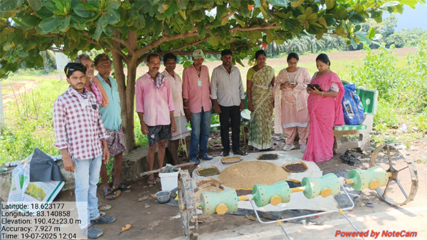 మరుపల్లి పంచాయతీ, రేగాపు వలస గ్రామంలో రైతు రామకృష్ణ పొలంలో డ్రం సీడర్ విధానంలో వరి నాటడం కార్యక్రమాన్ని ఈ సందర్భంగా ఆమె మాట్లాడుతూ ఈ విధానంలో ఎకరానికి 8 నుంచి 10 కేజీలు విత్తనాన్ని 24 గంటలు నానబెట్టి 12 గంటలు మండిగట్టి చిన్న మొలక వచ్చిన తర్వాత, ఈ విత్తనాన్ని బాగా దమ్ము చేసి,చదును చేసిన పొలంలో డ్రమ్ సిడర్ ఉపయోగించాలని తెలిపారు. ఇలా వరి విత్తనాలు విత్తడం వలన రైతులకు నారుతీత ఉడుపు ఖర్చులు తగ్గుతాయని అన్నారు. ఈ విధానంలో