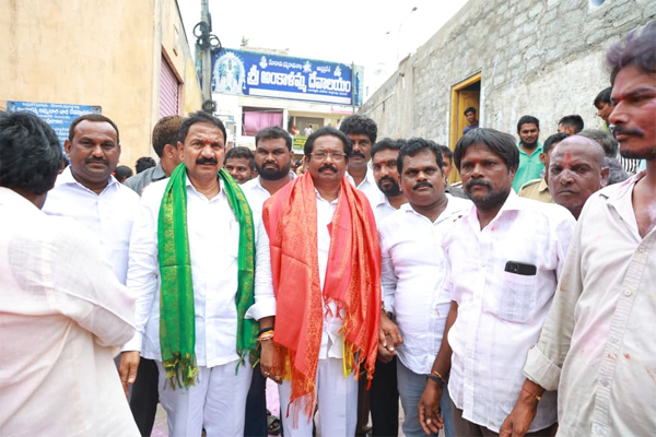 న్యూస్ తెలుగు / వినుకొండ : స్థానిక ఏనుగుపాలెం రోడ్డులో ఉన్న శ్రీ అంకాళమ్మ దేవాలయంలో నిర్వహించిన బోనాల ఉత్సవంలో ప్రభుత్వ చీఫ్ విప్ జీవి ఆంజనేయులు పాల్గొన్నారు. అమ్మవారికి ప్రత్యేక పూజలు నిర్వహించారు. ఈ కార్యక్రమంలో డీసీసీబీ చైర్మన్ మక్కెన మల్లికార్జున రావు నాయకులు, కార్యకర్తలు,పెద్ద సంఖ్యలో భక్తులు పాల్గొన్నారు. ఆలయ కమిటీ వారు చీఫ్ విప్ జీవి కి ఘనంగా స్వాగతం పలికారు. ఈ సందర్బంగా జీవి మాట్లాడుతూ. ఇలాంటి ఉత్సవాలు మన సంస్కృతిని, సంప్రదాయాలను కాపాడతాయని, ప్రజలందరూ సుఖసంతోషాలతో ఉండాలని ఆకాంక్షించారు. (Story:బోనాల ఉత్సవంలో పాల్గొన్న జీవి)