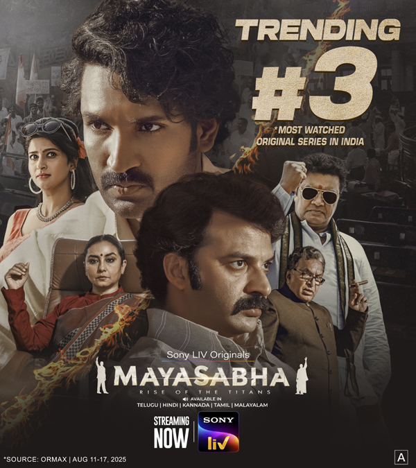 న్యూస్తెలుగు/ హైదరాబాద్ సినిమా : ‘మయసభ: రైజ్ ఆఫ్ టైటాన్స్’ ప్రస్తుతం దేశవ్యాప్తంగా ప్రేక్షకులను ఆకర్షిస్తోంది, ఆగస్టు 11–17, 2025 వారానికి గానూ ఓర్మాక్స్ మీడియా ఓ సర్వేని వెల్లడించింది. భారతదేశంలో అత్యధికంగా వీక్షించబడిన స్ట్రీమింగ్ షోల జాబితాలో ‘మయసభ’ 3వ స్థానంలో ఉందని ఓర్మాక్స్ ప్రకటించింది. ఇప్పటికే ఈ సిరీస్ 2.8 మిలియన్ల వీక్షణలతో పాన్-ఇండియా వైడ్గా సంచలనం సృష్టించింది. భాషా సరిహద్దుల్ని చెరిపేస్తూ అన్ని ప్రాంతాల ప్రేక్షకుల్ని ‘మయసభ’ మెప్పిస్తోంది.