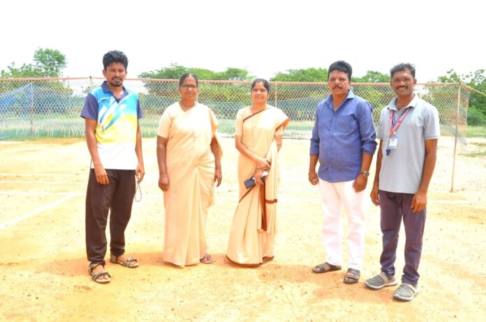 జిల్లా మహిళల బాల్ బ్యాడ్మింటన్ శిక్షణ ఏర్పాట్లు పరిశీలన