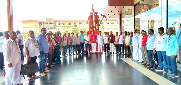 న్యూస్ తెలుగు /వినుకొండ : 23,24,25 తేదీలలో సిపిఐ 28వ రాష్ట్ర మహాసభల సందర్భంగా మహాసభ ప్రాంగణంలో పలనాడు జిల్లా ప్రతినిధులు సిపిఐ రాష్ట్ర కార్యదర్శి వర్గ సభ్యులు జంగాల అజయ్ కుమార్, పల్నాడు జిల్లా కార్యదర్శి ఏ.మారుతి వరప్రసాద్, జిల్లా సహాయ కార్యదర్శి లు షేక్ హుస్సేన్, కాసా రాంబాబు, వినుకొండ, మాచర్ల, గురజాల, చిలకలూరిపేట, నరసరావుపేట, సత్తనపల్లి, పెదకూరపాడు నియోజకవర్గాల కార్యదర్శులు ప్రతినిధులు పాల్గొన్నారు. (Story:ఒంగోలు మహాసభల్లో..)