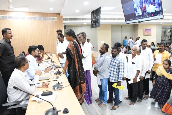 న్యూస్ తెలుగు/వనపర్తి : ప్రజావాణిలో వచ్చే ఫిర్యాదులను నిర్లక్ష్యం చేయకుండా ఎప్పటికప్పుడు పరిష్కరించాలని జిల్లా కలెక్టర్ ఆదర్శ్ సురభి అధికారులను ఆదేశించారు. సోమవారం కలెక్టరేట్లోని సమావేశ మందిరంలో నిర్వహించిన ప్రజావాణి కార్యక్రమంలో అదనపు కలెక్టర్ స్థానిక సంస్థలు యాదయ్య, ఆర్డీఓ సుబ్రమణ్యంతో కలిసి ప్రజల నుండి అర్జీలు స్వీకరించారు. ఈ సందర్భంగా కలెక్టర్ మాట్లాడుతూ ప్రజావాణి సమస్యలపై ఎప్పటికప్పుడు స్పందిస్తూ, ఫిర్యాదుదారులకు తగిన సమాచారం అందించాల్సిన బాధ్యత అధికారులపై ఉందన్నారు. ముఖ్యమంత్రి ప్రజావాణి, మంత్రి ద్వారా ఈ జిల్లాకు సంబంధించిన ప్రజావాణి ఫిర్యాదులు, ప్రతి సోమవారం జిల్లా ప్రజావాణిలో వచ్చే ఫిర్యాదులను ఎప్పటికప్పుడు పరిష్కరించాలని అధికారులను ఆదేశించారు. ఈరోజు ప్రజావాణికి మొత్తం 44 ఫిర్యాదులు వచ్చాయి.ప్రజల ఫిర్యాదులు సాధ్యమైనంత త్వరగా పరిష్కరించేందుకు అధికారులు కృషి చేయాలని అధికారులను సూచించారు. ప్రజావాణి కార్యక్రమానికి అన్ని శాఖల జిల్లా అధికారులు, వీడియో కాన్ఫరెన్స్ ద్వారా మండల అధికారులు, తదితరులు పాల్గొన్నారు.(Story : ప్రజావాణి ఫిర్యాదులను ఎప్పటికప్పుడు పరిష్కరించండి )