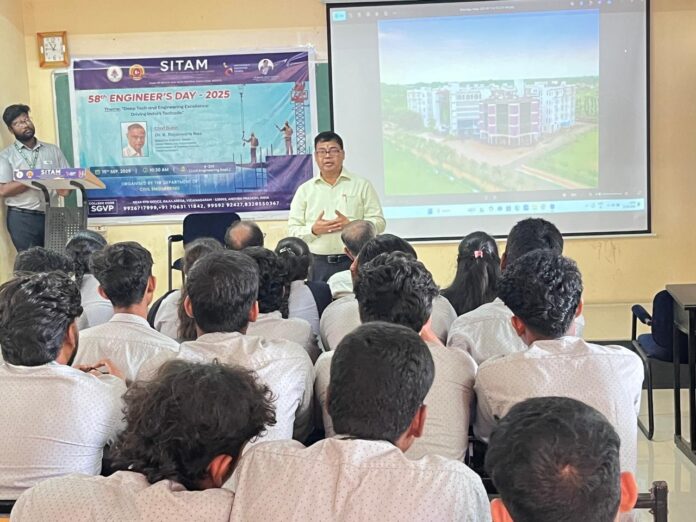 న్యూస్ తెలుగు/విజయనగరం : స్థానిక గాజులరేగ పరిధి లో గల సీతం కళాశాలలో 58వ ఇంజనీర్ల దినోత్సవంసోమవారం నిర్వహించారు. భారత రత్న సర్ మోక్షగుండం విశ్వేశ్వరయ్య కు నివాళులర్పిస్తూ డీప్ టెక్ & ఇంజనీరింగ్ ఎక్సలెన్స్ – డ్రైవింగ్ ఇండియాస్ టెకేడ్ అనే థీమ్తో ఈ వేడుకను నిర్వహించారు.ఈ కార్యక్రమానికి ఆంధ్రప్రదేశ్ ప్రభుత్వ జలవనరుల శాఖ విశ్రాంత ఎగ్జిక్యూటివ్ ఇంజనీర్ డాక్టర్ కె. రాజేశ్వరరావు ముఖ్య అతిథిగా విచ్చేశారు.సుస్థిర ఇంజనీరింగ్ ఆచరణల పై ఆయన చేసిన ప్రసంగం విద్యార్థులను విశేషంగా ఆకర్షించింది. ఇందులో భాగంగా సుస్థిర అభివృద్ధి కొరకు అధిక నాణ్యత, అధిక పరిమాణం కలిగిన ఫ్లై యాష్ కాంక్రీట్”* పై ప్రదర్శన తో గ్రీన్ టెక్నాలజీ మరియు సుస్థిర అభివృద్ధి యొక్క ప్రాధాన్యతను విద్యార్ధులకు వివరించారు.ఈ కార్యక్రమంలో సివిల్ ఇంజనీరింగ్ విభాగాధిపతి డాక్టర్ జి. రవికిశోర్ మాట్లాడుతూ వేగంగా మారుతున్న సాంకేతిక పరిజ్ఞానంలో ఇంజనీర్ల బాధ్యతలు, పాత్రలపై ఆయన విద్యార్థులకు స్పష్టతనిచ్చారు.కళాశాల ప్రిన్సిపాల్ డాక్టర్ డి. వి. రామమూర్తి విద్యార్థులను సృజనాత్మకత, ఆత్మవిశ్వాసంతో ఇంజనీరింగ్ సవాళ్లను ఎదుర్కోవాలని పేర్కొన్నారు.సత్య విద్యా సంస్థల డైరెక్టర్ డాక్టర్ మజ్జి శశిభూషణరావు సర్ విశ్వేశ్వరయ్య వారసత్వాన్ని స్మరించుకొని, విద్యార్థుల్లో క్రమశిక్షణ, అంకితభావం, కొత్త ఆవిష్కరణల పట్ల ఆసక్తిని పెంపొందించుకోవాలని ఈ సందర్భంగా కోరారు.ఈ కార్యక్రమంలో భాగంగా నిర్వహించిన ప్రాజెక్ట్ ఎక్స్పో లో వివిధ విభాగాల విద్యార్థులు ప్రాజెక్టులు, వర్కింగ్ మోడల్స్ ను ప్రదర్శించారు. ఉత్తమ ప్రాజెక్టులను రూపొందించిన విద్యార్ధులకు కళాశాల యాజమాన్యం బహుమతులు, ప్రశంసాపత్రాలు అందజేశారు.ఈ కార్యక్రమంలో కళాశాల వైస్ ప్రిన్సిపాల్ సి.హెచ్. వెంకటలక్ష్మి వివిధ విభాగాధిపతిలు, అధ్యాపకులు, విద్యార్థులు పాల్గొన్నారు.(Story :సీతంలో 58వ ఇంజనీర్ల దినోత్సవ వేడుకలు )