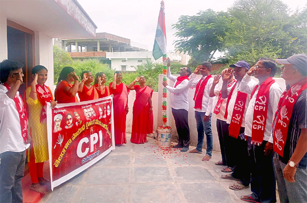 న్యూస్తెలుగు/ వనపర్తి : ‘విలీన దినోత్సవం’జరిపే విషయంలో టిఆర్ఎస్ కాంగ్రెస్ దొందు దొందేనని సిపిఐ జిల్లా కార్యదర్శి విజయరాములు విమర్శించారు. బుధవారం సిపిఐ ఆఫీస్ వద్ద జాతీయ పతాకాన్ని ఎగరవేసిన అనంతరం వనపర్తి అంబేద్కర్ చౌక్ లో సిపిఐ ఆధ్వర్యంలో తెలంగాణ సాయుధ పోరాట వారోత్సవాలను నిర్వహించారు. ముందుగా తెలంగాణ సాయుధ పోరాటయోధులు రావి నారాయణరెడ్డి, బద్దం ఎల్లారెడ్డి, మగ్దుం మైనుద్దీన్, దొడ్డి కొమరయ్య, ఐలమ్మ, సోయబుల్లా ఖాన్ చిత్రపటాలకు పూలమాలలు వేసి నివాళులర్పించారు. ఈ సందర్భంగా నిర్వహించిన పోరాట వారోత్సవాల ముగింపు సమావేశం సిపిఐ పట్టణ కార్యదర్శి రమేష్ అధ్యక్షతన నిర్వహించారు. సిపిఐ జిల్లా కార్యదర్శి విజయరాములుముఖ్య అతిథిగా, అతిథిగా శ్రీరామ్ పాల్గొని మాట్లాడారు. తాము అధికారంలోకి వస్తే విలీన దినాన్ని జరుపుతామని ప్రకటించిన బీఆర్ఎస్ జరపలేదన్నారు. కాంగ్రెస్ అధికారంలోకి వచ్చాక విలీన దినోత్సవం జరుపుతారని ప్రజలు ఆశించారన్నారు. విలీన దినోత్సవం జరపకుండా ప్రజాపాలన దినోత్సవం పేరుతో ఈరోజు కార్యక్రమం నిర్వహించారని ఇది సరికాదన్నారు. దేశానికి ఆగస్టు 15, 19 47లో స్వాతంత్రం సిద్ధించగా తెలంగాణకు స్వాతంత్రం రాలేదన్నారు. నిజాం నవాబు పాలనలోనే తెలంగాణ కొనసాగిందన్నారు. నిజాం నవాబు, రజాకార్లు, నిజాం తాబేదారులు ప్రజల కష్టాన్ని ప్రాణమానధనాలను దోచుకున్నారన్నారు. ప్రజలచే వెట్టిచాకిరి చేయించారని, బానిసలుగా మార్చారని, తిరగబడితే చంపేశారని, మహిళలను మానభంగాలు చేశారన్నారు. నిజాం రాక్షస పాలన నుంచి తెలంగాణను ప్రభుత్వం చేసేందుకు సిపిఐ ఆధ్వర్యంలో యోధులు తెలంగాణ రైతాంగ సాయుధ పోరాటం సాగించారన్నారు. గ్రామాల నుంచి నిజాం మద్దతుదారులైన దొరలను తరిమికొట్టి 3000 గ్రామాలను విముక్తం చేసిఎర్రజెండాలు పాతారన్నారు. పది లక్షల ఎకరాల భూమిని పేదలకు పంచారని, వెట్టి చాకిరి నుంచి విముక్తి కలిగించారన్నారు. సాయుధ పోరాటంలో 4500 మంది ప్రాణత్యాగం చేశారని సిపిఐది త్యాగాల చరిత్ర అన్నారు. పోరాటాలకు తలొగ్గిన నిజాం నవాబు విధిలేక తెలంగాణను సెప్టెంబర్ 17, 1948లో భారతదేశంలో విలీనం చేశారన్నారు. ఇంతటి మహత్తర ఉద్యమం ద్వారా తెలంగాణ విలీనం జరిగిందన్నారు. అందువల్ల తెలంగాణ విలీన దినోత్సవం జరపాలని సిపిఐ ఏళ్లుగా డిమాండ్ చేస్తుందన్నారు. విలీన దినోత్సవం జరపటానికి ప్రభుత్వం ఎందుకు భయపడుతుందని ప్రశ్నించారు. ప్రభుత్వం అధికారికంగా విలీన దినోత్సవం జరిపే దాకా సిపిఐ పోరాడుతుందన్నారు. నాడు ప్రజల కష్టాలను కడతేర్చేందుకు సిపిఐ సాయుధ పోరాటం సాగించిందని నాటి యోధుల స్ఫూర్తితో ప్రజా సమస్యల పరిష్కారానికి ప్రజలు ఎర్రజెండా కింద పోరాడాలన్నారు. అందుకోసం గ్రామాల్లో పార్టీని బలోపేతం చే