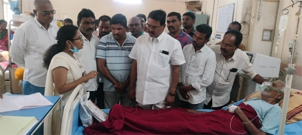 న్యూస్తెలుగు/వనపర్తి : గోపాల్ పేట మండలం సాకలిపల్లి గ్రామ బిఆర్ఎస్ నాయకులు శ్రీనివాస రెడ్డి తండ్రి రామ్ రెడ్డి అనారోగ్యంతో ప్రభుత్వ ఆసుపత్రిలో చికిత్స తీసుకుంటున్న విషయం తెలుసుకున్న మాజీ మంత్రి సింగిరెడ్డి నిరంజన్ రెడ్డి సోమవారం పరామర్శించి మెరుగైన వైద్యం అందించాలని వైద్యులకు సూచించారు. అనంతరం ఆసుపత్రికి వచ్చిన రోగులను పలకరించి యోగక్షేమాలు అడిగి తెలుసుకున్నారు. అనంతరం నర్సింగ్ విద్యార్థులను పలకరించి నర్సింగ్ కోర్స్ ఎంచుకొని రోగులకు సేవలు అందించాలన్న ఆలోచనను అభినందించారు. రోగుల పట్ల ఆప్యాయంగా ఉంటూ సేవలు అందించాలని అన్నారు. ఈ సందర్భంగా విద్యార్థినులు తమరి హయంలో ఎన్నో వైద్య, విద్యా సంస్థలు వచ్చి మాలో ఆత్మస్థైర్యం పెంచాయని అందుకు ధన్యవాదాలు తెలిపారు. మాజీ మంత్రి వెంట జిల్లా అధ్యక్షులు గట్టు యాదవ్, జిల్లా మీడియా కన్వీనర్ నందిమల్ల అశోక్, జోహెబ్ హుస్సేన్, చంద్రశేఖర్, గన్నోజు మోహన్, నాగేంద్రం ఉన్నారు. (Story:రోగులకు ఆప్యాయతతో సేవలు అందించాలి)