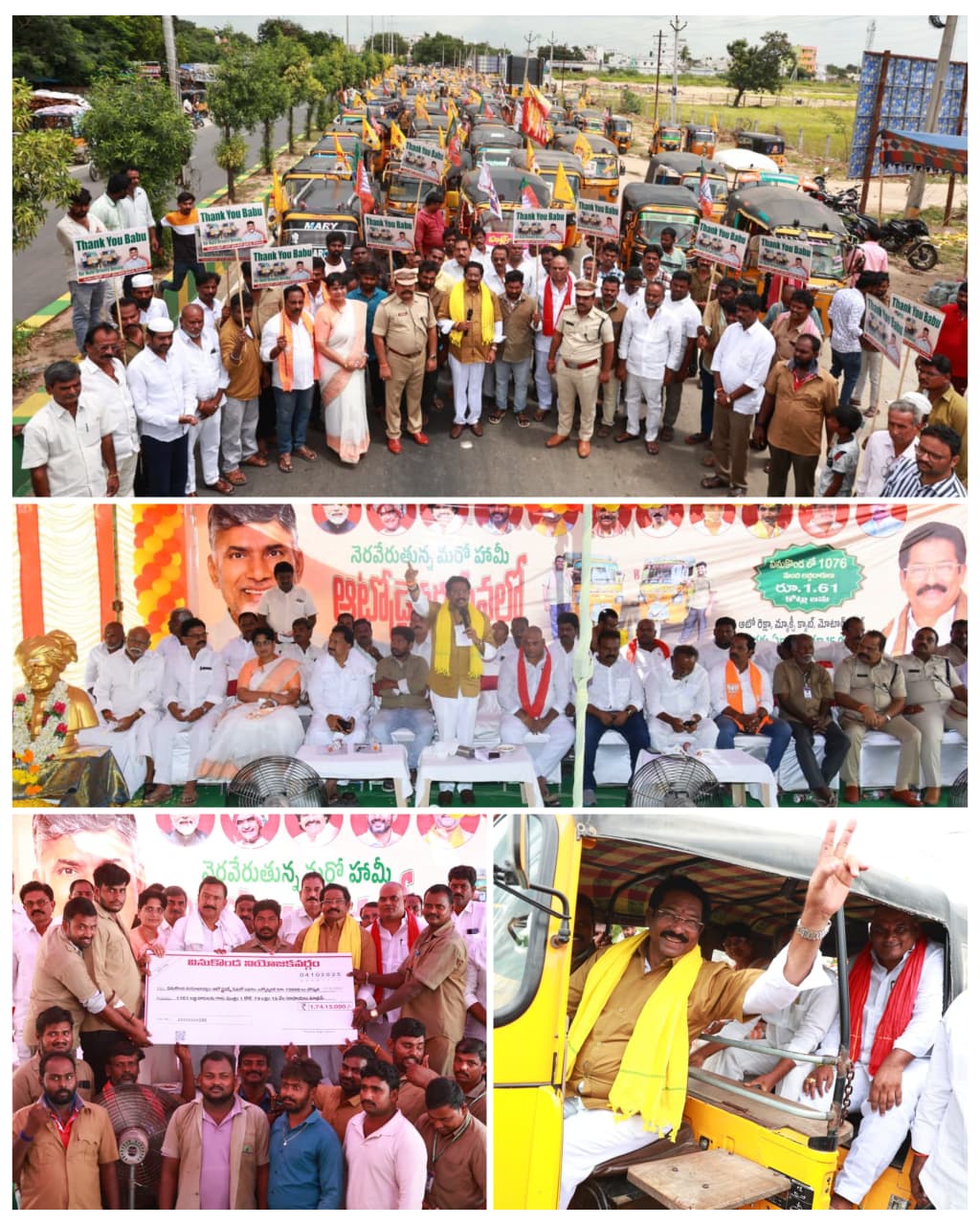 న్యూస్ తెలుగు/వినుకొండ : రాష్ట్రంలో 2,90,669 మంది ఆటో డ్రైవర్లకు ఒకేరోజు రూ.436 కోట్లు సాయం అందించడం కొత్త చరిత్ర అని వినుకొండ ఎమ్మెల్యే, ప్రభుత్వ చీఫ్విప్ జీవీ ఆంజనేయులు అన్నారు. తమ నియోజకవర్గంలోనే 1161 మంది లబ్ధిదారుల ఖాతాల్లో రూ.1.74 కోట్లు జమ చేయడం ఎంతో సంతోషాన్ని ఇస్తోంద న్నారు. వినుకొండలో ఆటోడ్రైవర్ల సేవలో పథకం ఉత్సాహంగా ప్రారంభమైంది. నరసరావుపేట రోడ్డులో ఎన్నెస్పీ కాల్వ కట్ట, బస్టాండ్ సెంటర్, స్తూపం సెంటర్ మీదుగా మున్సిపల్ ఆఫీస్ వరకు ఆటోల భారీ ర్యాలీతో ఈ కార్యక్రమానికి శ్రీకార చుట్టారు. చీఫ్విప్ జీవీ ఖాకీ చొక్కా ధరించి స్వయంగా ఆటో నడిపారు. అనంతరం మాట్లాడుతూ ఎన్నికల హామీల్లో లేకపోయినా ఉచితబస్సు ప్రయాణం వల్ల వారికి జరిగే నష్టం భర్తీకే చంద్రబాబు ఈ నిర్ణయం తీసుకున్నారని తెలిపారు. కూటమి ప్రభుత్వంలో ఒక్కొక్కరి రూ.15వేలు లబ్ది చేకూరుస్తుంటే గత వైసీపీ పాలన లో కేవలం రూ.10 వేలు ఇచ్చి డీజిల్, పెట్రోల్ ధరలు అమాంతం పెంచి జేబులకు చిల్లుపెట్టారని విమర్శించారు. వేలాది రూపాయల జరిమానాలు, రోడ్ ట్యాక్సులు పెంచేసి ఆటో డ్రైవర్ల రక్తాన్ని జలగల్లా జగన్రెడ్డి పీల్చేశారని, ప్రశ్నిద్దామంటే తప్పుడు కేసులతో వేధించే వారన్నారు. ఎన్డీఏ ప్రభుత్వం వచ్చిన వెంటనే చంద్రబాబు ఆ పన్నులను రద్దు చేశారన్నారు. గుంతల రోడ్లు బాగు చేసి వారిని ప్రమాదాలు, మరమ్మతుల నుంచి కాపాడా రని గుర్తు చేశారు.ఈ కార్యక్రమంలో డీసీసీబీ చైర్మన్ మక్కెన మల్లికార్జున రావు పరిశీలకులు మానుకొండ శివప్రసాద్ , జనసేన నాయకులు నాగ శ్రీను రాయల్ కూటమి నాయకులు తదితరులు పాల్గొన్నారు.