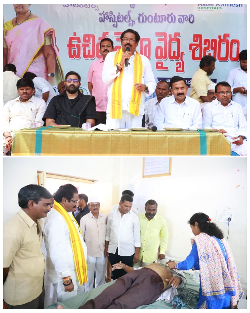 న్యూస్ తెలుగు/వినుకొండ : వరల్డ్ హార్ట్ డే మరియు బ్రెయిన్ స్ట్రోక్ డే సందర్భంగా వినుకొండ నియోజకవర్గం, బొల్లాపల్లి మండల కేంద్రంలో ఆదివారం శివశక్తి లీలా అంజన్ ఫౌండేషన్ వారి సౌజన్యంతో, ఆస్టర్ రమేష్ హాస్పిటల్స్ వారి ఆధ్వర్యంలో ఏర్పాటు చేసిన ఈ కార్యక్రమంలో ప్రభుత్వ చీఫ్ విప్ జివి ఆంజనేయులు ముఖ్య అతిథిగా పాల్గొన్నారు. అవగాహన ర్యాలీలో పాల్గొన్న జివి, గుండె మరియు మెదడు ఆరోగ్యం పట్ల ప్రజలకు అవగాహన కల్పించారు. అనంతరం, ఏర్పాటు చేసిన ఉచిత మెగా వైద్య శిబిరాన్ని ఆయన లాంఛనంగా ప్రారంభించారు. ఈ శిబిరంలో ఆస్టర్ రమేష్ హాస్పిటల్స్ వైద్య నిపుణుల బృందం ప్రజలకు ఉచితంగా వైద్య పరీక్షలు నిర్వహించి, అవసరమైన సలహాలు, మందులు అందించారు. చీఫ్ విప్ మాట్లాడుతూ. ప్రజలు తమ ఆరోగ్యం పట్ల శ్రద్ధ వహించాలని, జీవనశైలి మార్పుల ద్వారా గుండె జబ్బులు మరియు బ్రెయిన్ స్ట్రోక్ వంటి వాటిని నివారించవచ్చని తెలిపారు. ఇటువంటి ఉచిత వైద్య శిబిరాలను సద్వినియోగం చేసుకోవాలని ప్రజలకు విజ్ఞప్తి చేశారు. కార్యక్రమంలో డీసీసీబీ చైర్మన్ *మక్కెన మల్లికార్జున రావు, వైద్య బృందం, నాయకులు, అధికారులు పాల్గొన్నారు.(Story : మెగా వైద్య శిబిరం ప్రారంభించిన ప్రభుత్వ )