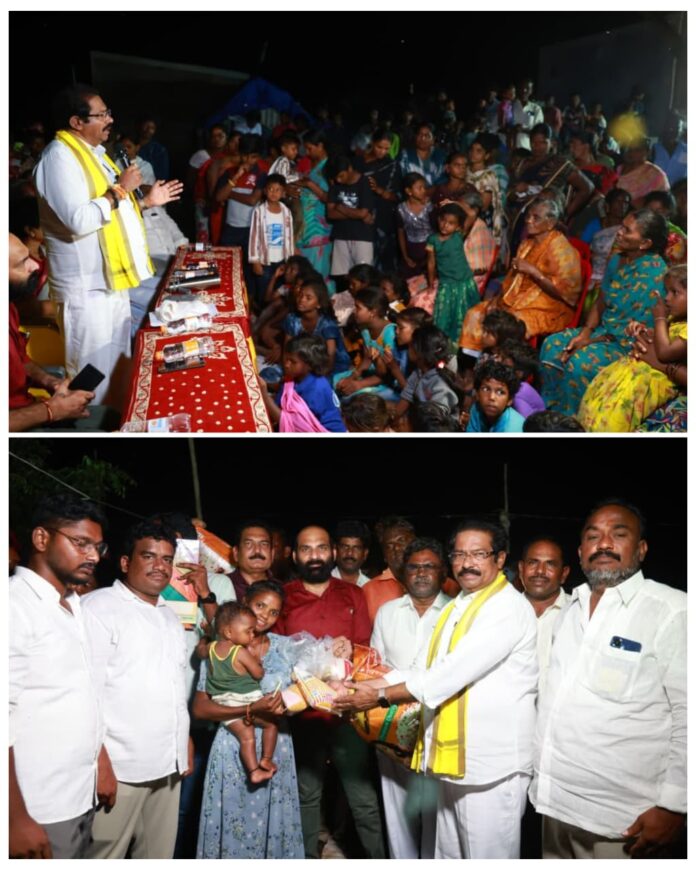 న్యూస్ తెలుగు/వినుకొండ : మొంథా తుఫాన్ కారణంగా సంభవించిన వరదల్లో తీవ్రంగా నష్టపోయిన వినుకొండ మండలం నాగిరెడ్డిపల్లి పంచాయతీలోని అరుంధతీ కాలనీ మరియు రజక కాలనీలలోని 200కు పైగా కుటుంబాలకు ప్రభుత్వ చీఫ్ విప్ జీవీ ఆంజనేయులు అండగా నిలిచారు. శివశక్తి లీలా అంజన్ ఫౌండేషన్ ఆధ్వర్యంలో బాధితులకు సహాయ సామాగ్రిని పంపిణీ చేశారు. ఈ కార్యక్రమంలో ప్రతి కుటుంబానికి రెండు దుప్పట్లు,రెండు చీరలు,వారిలో కొంతమందికి బియ్యం బస్తా నిత్యావసర సరుకులు అందించారు. అంతేకాకుండా, బాధితులకు ఆర్థిక తోడ్పాటు అందించాలనే ఉద్దేశంతో, ప్రతి కుటుంబంలో ఒక వ్యక్తికి చొప్పున రూ. 1,000/నగదును కూడా పంపిణీ చేశారు. వరద బాధితులకు తక్షణ ఉపశమనం కలిగించేందుకు జీవీ చేసిన ఈ విశాల హృదయంతో కూడిన సహాయం పట్ల స్థానికులు హర్షం వ్యక్తం చేశారు. ఈ కార్యక్రమంలో పరిశీలకులు మానుకొండ శివప్రసాద్ , నాయకులు, అధికారులు, తదితరులు పాల్గొన్నారు.(Story :మొంథా తుఫాన్ బాధితులకు ప్రభుత్వ చీఫ్ విప్ జీవీ చేయూత )
