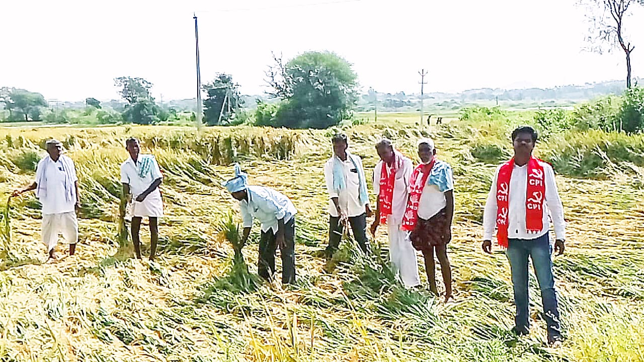 న్యూస్ తెలుగు/వనపర్తి : మెంథా తుఫాన్ వర్షానికి జిల్లాలో దెబ్బతిన్న వరి పత్తి తదితర పంటలకు ఎకరానికి రూ. 50,000 నష్టపరిహారం ఇవ్వాలని సిపిఐ వనపర్తి నియోజకవర్గం కార్యదర్శి జే రమేష్ డిమాండ్ చేశారు. వనపర్తి మండలం నర్సింగాయిపల్లి, గోపాల్పేట మండలం తాడిపర్తి గోపాల్పేట పోలికే పాడు లలొ దెబ్బతిన్న పంటలను స్థానిక నేతలతో కలిసి పరిశీలించిన అనంతరం పోలికపాడులో మాట్లాడారు. వర్షానికి జిల్లాలో వేలాది ఎకరాల్లో వరి పంట నేలకు ఒరిగి నీళ్లలో పడ్డాయని, పక్వానికి వచ్చిన ఒడ్లు మొలకెత్తి, పక్వం కాని వడ్లు తాలు పోయి రైతుల నష్టపోయే పరిస్థితి ఉందన్నారు. ఎకరానికి రూ. 40 వేల దాకా పెట్టుబడి పెట్టి 6 కాలం పనిచేశారన్నారు. పంట చేతికి వచ్చే దశలో అకాల వర్షం రైతుల ఆశలను చిదిమేసిందన్నారు. రెవెన్యూ వ్యవసాయ అధికారులు గ్రామాలలో పర్యటించి ప్రతి రైతు పంట నష్టాన్ని స్పష్టంగా లెక్కించాలన్నారు. నష్టపోయిన ప్రతి రైతుకు సహాయం అందేలా చర్యలు తీసుకోవాలన్నారు. ఖరీఫ్లో ముందుగా నాటిన చేలు కోస్తున్నారని, కొందరు నూర్పిడులు కూడా చేశారని,కొనుగోలు కేంద్రాలు తెరవకపోవడంతో ధాన్యం ఎక్కడ పోసుకోవాలోఅర్థం కాక రైతులు ఆవేదన చెందుతున్నారన్నారు. గోపాల్పేట కొనుగోలు కేంద్రంలో రైతులు ధాన్యం పోసారని కొనుగోలు ప్రారంభించకపోవడంతో మళ్లీ వర్షానికి తడుస్తుందని ఆందోళన చెందుతున్నారన్నారు. తాడిపర్తి లో కేంద్రం తెరవక రైతులు ఇండ్ల ముందే ధాన్యం పోసుకొని ఆరబెడుతున్నారన్నారు. చాలా గ్రామాలలో కొనుగోలు కేంద్రాలకు స్థలాలు లేక ఇబ్బందులు పడుతున్నారని,పోలికే పాడు కేతేపల్లితో పాటు చాలా గ్రామాల్లో కొనుగోలుకు దాన్యం పోసేందుకు స్థలాలు లేవన్నారు.ప్రతి గ్రామంలో కొనుగోలు కేంద్రాలకు శాశ్వత స్థలాలను కేటాయించాలన్నారు. కొనుగోలు కేంద్రాల ద్వారా గత రబీలో సేకరించిన సన్నధాన్యానికి క్వింటాల్ రూ. 500 బోనస్ చెల్లించలేదని, వెంటనే చెల్లించాలన్నారు. ఆలస్యంతో ప్రభుత్వం బోనస్ ఎగవేస్తుందేమోనని ఆందోళన చెందుతున్నారన్నారు. ఖరీఫ్లో సేకరించే ధాన్యానికి కనీస మద్దతు డబ్బుతోపాటు, బోనస్ రూ. 500 కూడా కలిపి చెల్లించాలని డిమాండ్ చేశారు. రైతుల సమస్యలను పరిష్కరించకుంటే సిపిఐ ఆధ్వర్యంలో బాధితులను సమీకరించి పెద్ద ఎత్తున ఆందోళన చేస్తామని హెచ్చరించారు. గోపాల్పేట మండల కార్యదర్శి మంకలి శాంతన్న రైతులు పాల్గొన్నారు.(Story :దెబ్బతిన్న పంటలకు ఎకరానికి రూ. 50,000 ఇవ్వాలి )