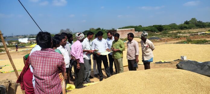 వరి ధాన్యం కొనుగోలు కేంద్రాల్లో రైతులు తెచ్చిన ధాన్యాన్ని కొనుగోలు చేసిన వెంటనే ట్యాబ్ ఎంట్రీ ప్రక్రియ పూర్తి చేయాలి