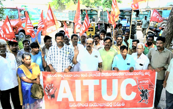 న్యూస్ తెలుగు /వినుకొండ : కార్మికులు దశాబ్దాల పాటు విరోచత పోరాటాలు చేసి సాధించుకున్న 29 కార్మిక చట్టాలను అమలు చేయాలని కేంద్ర ప్రభుత్వం కార్మికుల చట్టాలను కాలరాయుటకు దుర్మార్గంగా తీసుకువచ్చిన నాలుగు లేబర్ కోడ్ లను రద్దు చేయాలని సిపిఐ పల్నాడు జిల్లా కార్యదర్శి మారుతి వరప్రసాద్ కేంద్ర ప్రభుత్వాన్ని డిమాండ్ చేశారు. శనివారం నాడు వినుకొండ పట్టణం లోని మున్సిపల్ కార్యాలయంలో కార్మికుల మస్టర్ సమయంలో నిర్వహించిన ధర్నాలో ఆయన పాల్గొని మాట్లాడుతూ 2014లో నరేంద్ర మోడీ దేశ ప్రధానిగా వచ్చింది మొదలుకొని ప్రభుత్వ రంగ పరిశ్రమలలో అనేక రకాల వస్తువుల ఉత్పత్తి కారకులు కార్మికుల పైన దేశ ప్రజలకు పట్టెడన్నం పెడుతున్న రైతులపైన అనేక నల్ల చట్టాలు తెచ్చి వారి హక్కులను హరింపజేసిన నేపథ్యం జరిగింది దీనికి వ్యతిరేకంగా సంవత్సరం పాటు రైతాంగం కార్మికులు దానికి వ్యతిరేకంగా నల్ల చట్టాలు ఎత్తివేయాలని సుదీర్ఘ పోరాటం నిర్వహించారని దేశ ప్రజల ఆగ్రహ వేశాలు చవిచూసిన ప్రధాని నల్ల చట్టాలను వెనక్కి తీసుకున్నారని ఈనాడు మరల కార్మికుల చట్టాలను కాలరాయుటకు నాలుగు లేబర్ కోడ్ లను తీసుకువచ్చి కార్మికులు పోరాడి సాధించుకున్న కార్మిక చట్టాలను ఎత్తివేస్తున్నారని దీనిని సభ్య సమాజం ప్రజలు రైతులు కార్మిక వర్గం తీవ్రంగా వ్యతిరేకించి పోరాట కార్యక్రమాల ద్వారా ప్రభుత్వాన్ని నిలువరించాలని ఆయన అన్నారు. బిజెపి ప్రభుత్వం దేశంలో ఒక్క ప్రభుత్వ రంగ పరిశ్రమలు కూడా తీసుకొని రాలేదని గత ప్రభుత్వాల కాలంలో వేలాది ప్రభుత్వ రంగ పరిశ్రమలు ఏర్పాటు చేయడం జరిగిందని వాటిని ప్రైవేటు వ్యక్తులకు అంబానీ ఆదానీ లాంటి వారికి అప్పజెప్పుటకు కుట్రపాన్ని దేశంలోని ప్రభుత్వ రంగ పరిశ్రమలను కారు చౌకగా అమ్మి వేస్తున్నారని ఆ రంగాలలో పనిచేయుచున్న కార్మికులను వీధిన పడే వేస్తున్నారని ఆయన తీవ్రంగా విమర్శించారు ఐక్య పోరాటాలు ఒక్కటే శరణ్యమని ఆయన అన్నారు. ఏఐటియుసి నాయకులు బూదాల శ్రీనివాసరావు మాట్లాడుతూ కేంద్ర రాష్ట్ర ప్రభుత్వాల కార్మిక ప్రజా రైతు వ్యతిరేక విధానాలపై పోరాటాలకు సిద్ధం కావాలని కార్మికులకు పిలుపునిచ్చారు. ఈ కార్యక్రమంలో ఏఐటీయూసీ నాయకులు పిన్న బోయిన వెంకటేశ్వర్లు, కే మల్లికార్జునరావు, కార్మిక నాయకులు సంపెంగుల అబ్రహం రాజు, రాచపూడి ఏసు పాదం, కంచర్ల కోటేశ్వరరావు, కార్మికుల అధిక సంఖ్యలో పాల్గొన్నారు. (Story:కేంద్ర ప్రభుత్వం తీసుకొచ్చిన నాలుగు లేబర్ కోడ్ లను రద్దు చేయాలి)