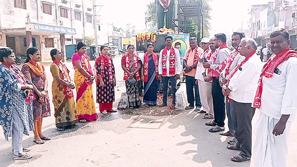 న్యూస్తెలుగు/వనపర్తి : రాజ్యాంగం లో డాక్టర్ బాబాసాహెబ్ అంబేద్కర్ ఇచ్చిన హక్కులు అవకాశాల వల్లే దేశంలోని పేద ప్రజల జీవితాల్లో మౌలిక మార్పులు వస్తున్నాయని సిపిఐ వనపర్తి నియోజకవర్గ కార్యదర్శి రమేష్, సిపిఐ జిల్లా కార్యవర్గ సభ్యుడు శ్రీరామ్ అన్నారు. వనపర్తి పట్టణం అంబేద్కర్ చౌక్ లో అంబేద్కర్ 69వ వర్ధంతిని సిపిఐ ఆధ్వర్యంలో నిర్వహించారు. విగ్రహానికి పూలమాలలు వేసి నివాళులర్పించారు. అసమానతలు,అస్పూర్శత కుల మతాల తారతమ్యం లేని సమాజం అంబేద్కర్ ఆశయం. ఆ ఆశయ సాధనకై ప్రతి ఒక్కరు కృషి చేయాలన్నారు.రాజ్యాంగం అన్ని వర్గాలకు సమానం గా అవకాశాలు,హక్కులు కల్పించారన్నారు.హక్కులు అవకాశాలను ప్రజలు ఉపయోగించుకొని ఎదగాలన్నారు. సిపిఐ జిల్లా కార్యవర్గ సభ్యులు, కళావతమ్మ,శ్రీరామ్,భవన నిర్మాణ కార్మిక సంఘం జిల్లా అధ్యక్షుడు చిన్న కురుమన్న, సిపిఐ పట్టణ సహయ కార్యదర్శి గోపాలకృష్ణ,సురేష్, భారత జాతీయ మహిళా సమాఖ్య వనపర్తి పట్టణ కన్వీనర్ జయమ్మ, కో కన్వీనర్ శిరీష,శ్రీదేవి,జ్యోతి,సుప్రియ, కాంతమ్మ, పానగల్ మండల కార్యదర్శి డంగు కురుమయ్య,మాజీ సహాయ కార్యదర్శి శివకుమార్ తదితరులు పాల్గొన్నారు. (Story:రాజ్యాంగం వల్లే సమాజంలో మౌలిక మార్పులు: సిపిఐ)