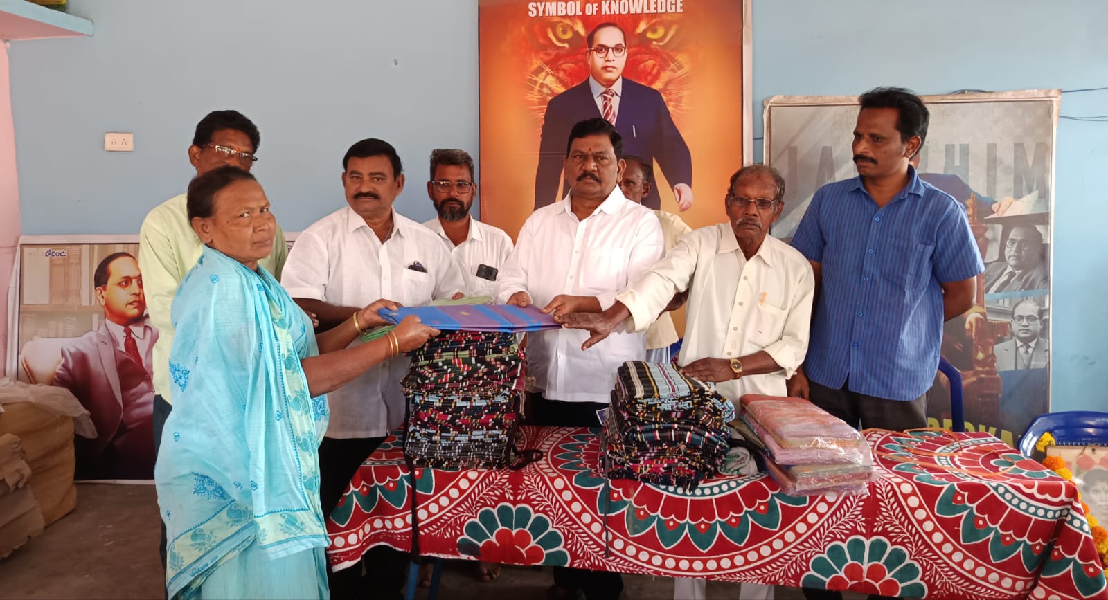 మాజీ డిప్యూటీ సీఎం రాజన్నదొర చేతుల మీదుగా పేదలకు దుప్పట్లు చీరలు పంపిణీ
