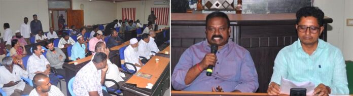 న్యూస్ తెలుగు/వినుకొండ : ఆంధ్రప్రదేశ్ చీఫ్ విప్ వినుకొండ ఎమ్మెల్యే జీవి ఆంజనేయులు దేశాలతో, వినుకొండ మున్సిపల్ చైర్ పర్సన్ సూచనలతో, స్థానిక పురపాలక సంఘ కౌన్సిల్ హాలు నందు సోమవారం మున్సిపల్ కమిషనర్ ఎం సుభాష్ చంద్రబోస్ అధ్యక్షతన నిర్వహించిన మినరల్ వాటర్ ప్లాంట్స్ నిర్వాహకుల సమావేశంలో పట్టణ పరిధిలో అందరూ మినరల్ వాటర్ ప్లాంట్స్ నిర్వాహకులు పురపాలక సంఘం నుండి మరియు జిల్లా కార్యాలయాల నుండి అనుమతులు తీసుకొని మాత్రమే ప్లాంట్స్ నిర్వహించాలి, ఆర్వో ప్లాంట్ పరిసర ప్రాంతాలు పరిశుభ్రంగా ఉండేల వాటర్ క్యాన్సును తరచు శుభ్రం చెయ్యాలి. వాటర్ క్యాన్స్ అన్నిటికీ మూతలు ఉండేలా చూడడం, ఫిల్టర్ బ్యాక్ వాష్ ను ప్రతి మూడు నెలలకు ఒకసారి మార్చాల్సిందిగా కోరారు, టీడీస్ ను ప్రతి రోజు రిజిస్టర్ నందు నమోదు చేసుకోవాలి, రా వాటర్ టీడీస్ ప్రతి రోజూ చెక్ చేసి నమోదు చేయవలెను, మినరల్ వాటర్ టేస్ట్ కోసం కలుపుతున్న రసాయన లిక్విడ్ వల్ల జీర్ణకోశ సంబంధిత సమస్యలు వస్తున్నందున ఆ లిక్విడ్ ను కలపకుండా చూడాలి, ప్రతి మూడు నెలలకు ఒకసారి లాబ్ టెస్ట్ రిపోర్ట్స్ ను తప్పని సరిగా మున్సిపల్ కార్యాలయంకు అందజేయాలి, పరిశుభ్రమైన నీటి తో పాటుగా కాల్షియం, పొటాసియం, తదితర ఖనిజ లవణాలను తగు మోతాదులో కలిగి ఉన్న నీటిని మాత్రమే వినియోగ దారులకు అందించలన్నారు. పైన తెలిపిన అన్ని నియమాలను వారి ప్లాంట్ వద్ద బోర్డు నందు ప్రదర్శించాలన్నారు. ప్రజలందరూ అనుమతులు ఉన్న వారివద్ద నుండి మాత్రమే మినరల్ వాటర్ కొనుగోలు చేయవలసినదిగా సూచించారు. మున్సిపల్ సిబ్బంది తరచు వాటర్ ప్లాంట్స్ తనిఖీ చేసి నిబంధనలు పాటించాలని, ప్లాంట్స్ ను మూసి వేస్తామని హెచ్చరించారు. ఈ సమావేశంలో శానిటరీ ఇన్స్పెక్టర్ షేక్ ఇస్మాయిల్, అసిస్టెంట్ ఇంజనీర్ ఆదినారాయణ, సానిటరీ సెక్రటరీలు, మేస్త్రులు, పట్టణంలోని మినరల్ వాటర్ ప్లాంట్ నిర్వాహకులు పాల్గొన్నారు.(Story : ఆర్వో ప్లాంట్ యజమానులు నిబంధనలు పాటించాలి )