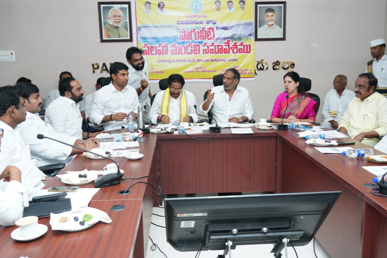 న్యూస్ తెలుగు/వినుకొండ : వరదల సమయంలో నాగార్జున సాగర్ ప్రాజెక్టు నుంచి వదిలిన నీటిని సైతం కృష్ణా జలాల్లో వినియోగించుకున్న నీటిగా లెక్కించడం వల్ల రాష్ట్రానికి న్యాయంగా రావాల్సిన నీటిని కోల్పోవాల్సి వస్తోందని జిల్లా ఇంచార్జ్ మంత్రి గొట్టిపాటి రవికుమార్, ప్రభుత్వ చీఫ్ విప్ జీవి ఆంజనేయులు, ఎంపీ లావు శ్రీకృష్ణదేవరాయలు అభిప్రాయపడ్డారు. మంగళవారం నరసరావుపేట కలెక్టరేట్ ఎస్సార్ శంకరన్ వీడియో కాన్ఫరెన్స్ హాలులో నిర్వహించిన సాగునీటి సలహా మండలి సమావేశానికి మంత్రి గొట్టిపాటి రవికుమార్ అధ్యక్షత వహించారు. ఈ కార్యక్రమంలో ప్రభుత్వ విప్ జీవి ఆంజనేయులు, జిల్లా కలెక్టర్ కృతిక శుక్లా, ఎంపీ లావు శ్రీకృష్ణ దేవరాయలు, ఎమ్మెల్సీ మర్రి రాజశేఖర్, ఎమ్మెల్యేలు చదలవాడ అరవింద బాబు, జూలకంటి బ్రహ్మానంద రెడ్డి, భాష్యం ప్రవీణ్ తదితరులు పాల్గొన్నారు. ఈ సమావేశంలో వారు మాట్లాడుతూ సాగునీటిపై రైతుల నుంచి పన్నులు వసూలు చేసి కాల్వల నిర్వహణ మెరుగుపరచాలన్నారు. ఎత్తిపోతల పథకాలు మెరుగ్గా నిర్వహించేందుకు మొబైల్ లిఫ్ట్ పరికరాలు, నూతన ట్రాన్స్ ఫార్మర్లపై ప్రతిపాదనలు పంపాలన్నారు. కాల్వల్లో సీపేజీ ద్వారా నీరు నష్టపోకుండా నివారించేందుకు డిజాస్టర్ మేనేజ్ మెంట్ నిధులు వినియోగించేందుకు చర్యలు తీసుకుంటామన్నారు. రూ.60 లక్షల వరకూ డిజాస్టర్ మేనేజ్ మెంట్ నిధులు మంజూరు చేసే అవకాశం ఉందని జిల్లా కలెక్టర్ కృతిక శుక్లా తెలిపారు.(Story : వరదనీటిని వాటాగా లెక్కేస్తే నష్టపోతాం )