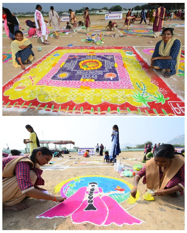 న్యూస్ తెలుగు / వినుకొండ : శ్రీమతి గంగినేని కళ్యాణి ప్రభుత్వ డిగ్రీ కళాశాలలో బుధవారం ప్రాంతీయ జూనియర్ కళాశాలలో ఆవరణలో ప్రాంతీయ స్థాయి సంక్రాంతి ముగ్గుల పోటీలు కళాశాల ప్రిన్సిపాల్ అధ్యక్షతన ఘనంగా నిర్వహించారు. ఈ పోటీల్లో ప్రథమ బహుమతి కృష్ణవేణి జూనియర్ కళాశాల విద్యార్థినీలు ఏమని ఏ శ్యామల గెలుపొందారు. వారికి 10 వేల రూపాయలను శ్రీ సాయి హాస్పిటల్ వారు బహుకరించారు. ద్వితీయ బహుమతి ఏపీ మోడల్ స్కూల్ చీకటి గల పాలెం విద్యార్థులు ఓ నాగేశ్వరి ఈ అభి దేవిక గెలుపొందారు. వీరికి 7వేల వేల రూపాయలను శ్రీ బాలాజీ హాస్పిటల్ వారు అందజేశారు. అలాగే ద్వితీయ బహుమతి ప్రభుత్వ జూనియర్ కళాశాల విద్యార్థినీలు ఎం లక్ష్మి ఎస్ కృపావతి గెలుపొందారు. వీరికి బహుమతిని రిటైర్డ్ హెడ్మాస్టర్ చింతగుంట సుబ్బారెడ్డి చేతుల మీదుగా అందజేశారు. ఈ పోటీలు కళాశాల ప్రిన్సిపాల్ డాక్టర్ కొల్లు శ్రీనివాసరావు ఆధ్వర్యంలో అత్యంత ఘనంగా జరిగాయి. ఈ పోటీలలో పరిసర ప్రాంతాలలోని 8 జూనియర్ కళాశాలలు ఆదర్శ పాఠశాలల నుండి కార్యక్రమానికి సహకరించిన మహిళా సాధికారిక కమిటీకి కళాశాల సిబ్బందికి విచ్చేసిన అతిధులకు విద్యార్థులకు మహిళా సాధికారక కమిటీ కోఆర్డినేటర్ డాక్టర్ జి స్వర్ణలత వీరికి ప్రత్యేక ధన్యవాదాలు తెలిపారు.(Story:వినుకొండ లో ఘనంగా ముగ్గుల పోటీలు)