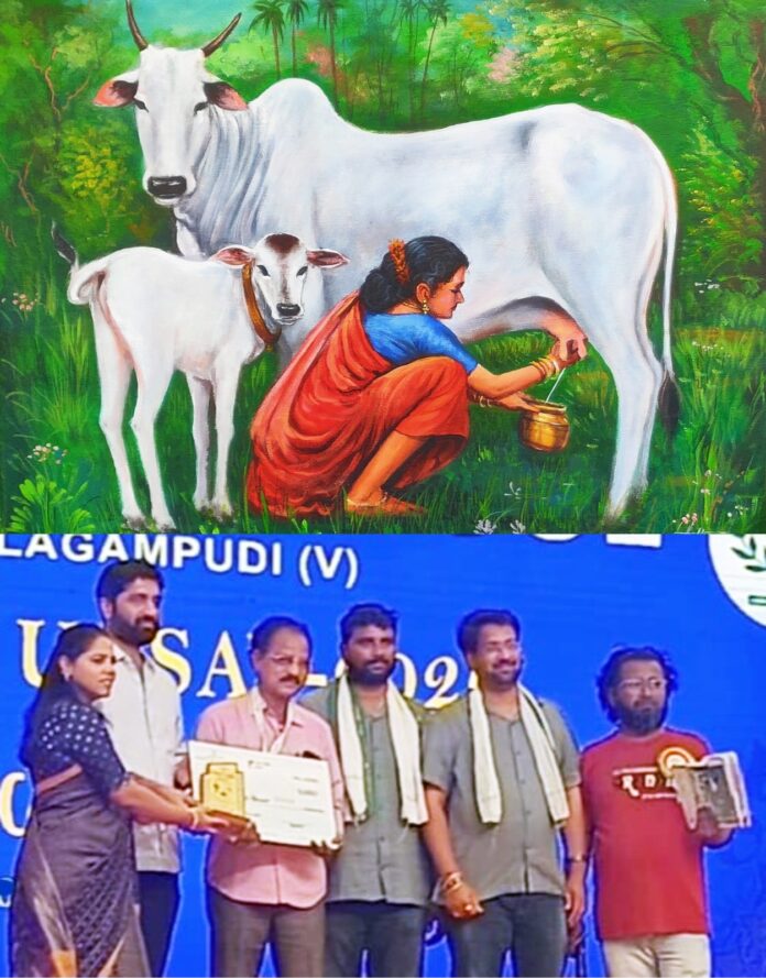 న్యూస్ తెలుగు/వినుకొండ : వినుకొండకు చెందిన జాతీయ చిత్రకారులు డా. వజ్రగిరి జెస్టిస్ కు కోనసీమ కలగాపులగం ఇంటర్నేషనల్ ఢిల్లీ పబ్లిక్ స్కూల్ లో సంక్రాంతి ఉత్సవాలలో భాగంగా బుధవారం జరిగిన ఆర్ట్ ఎగ్జిబిషన్ లో, పోటీలలో ద్వితీయ బహుమతి లభించింది. 170 మంది చిత్రకారులు పాల్గొన్న ఈ కార్యక్రమంలో జెస్టిస్ చిత్రించిన గంగిరెద్దు-దుక్కిటెద్దు,” చిత్రానికి మంచి స్థానం లభించింది. ఇదే రోజున కాకినాడ రామచంద్రాపురం లో జరిగిన ఆర్ట్ క్యాంపు లో పాలు తీస్తున్న పడితి లేగదూడ చిత్రం ఉత్తమ చిత్రంగా ప్రశంసలు అందుకుంది. నగదు బహుమతి గెలుచుకుంది. ఒకేసారి రెండు బహుమతులు పొందిన డా వజ్రగిరి జెస్టిస్ ను పలువురు పురప్రముఖులు, కవులు రచయితలు కళాకారులు, ఉపాధ్యాయులు, పాస్టర్స్, రాజకీయ నాయకులు అభినందించారు. వినుకొండ ఖ్యాతిని రాష్ట్ర స్థాయిలో నిలబెడుతున్న డా.వజ్రగిరి జెస్టిస్ మరెన్నో అవార్డులు సాధించాలని అభిలాష వ్యక్తం చేశారు.(Story : కోనసీమలో మెరిసిన పల్నాటి వజ్రం…. వినుకొండకు చెందిన జాతీయ చిత్రకారులు డా. వజ్రగిరి జెస్టిస్ )