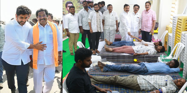 న్యూస్ తెలుగు / వినుకొండ : టిడిపి జాతీయ ప్రధాన కార్యదర్శి, రాష్ట్ర విద్య, ఐటీ శాఖ మాత్యులు నారా లోకేష్ 43వ జన్మదిన వేడుకలు సందర్భంగా వినుకొండ చీఫ్ విప్ కార్యాలయంలో ఎన్టీఆర్ మెమోరియల్ ట్రస్ట్ ఆధ్వర్యంలో “లెజెండరీ బ్లడ్ డొనేషన్ డ్రైవ్” రక్తదాన శిబిరాన్ని నిర్వహించారు. చీఫ్ విప్ జివి ఆంజనేయులు పిలుపుమేరకు వినుకొండ నియోజకవర్గంలోని యువత పెద్ద సంఖ్యలో శిబిరానికి తరలివచ్చి రక్తదానం చేశారు. ఉదయం 10 గంటల నుండి సాయంత్రం 5 గంటల వరకు కొనసాగిన శిబిరంలో 540 మంది యువకులు రక్తదానం చేయటం చేయటంతో వినుకొండ రాష్ట్రంలో ప్రథమ స్థానంలో నిలిచింది. లోకేష్ పుట్టినరోజు సందర్భంగా తన పిలుపు అందుకొని రక్తదానం చేసిన యువతకు చీఫ్ విప్ జీవి ఆంజనేయులు అభినందనలు తెలిపారు. (Story:రక్తదానంలో వినుకొండ స్టేట్ ఫస్ట్..)