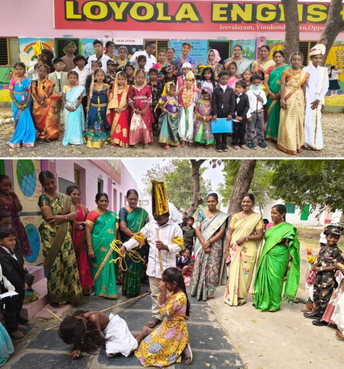 న్యూస్ తెలుగు/వినుకొండ : బాలికల దినోత్సవం మరియు 77వ గణతంత్ర దినోత్సవం పురస్కరించుకొని లయోలా ఇంగ్లీష్ మీడియం స్కూల్ నందు శనివారం బాల బాలికలకు ఫ్యాన్సీ డ్రెస్ పోటీలు నిర్వహించారు. ఈ కార్యక్రమాన్ని పాఠశాల కరస్పాండెంట్ ఫాదర్ అంతోనీ ప్రసాద్ ప్రారంభించారు. విద్యార్థిని విద్యార్థులు సైనికులుగా, డాక్టర్స్, టీచర్స్, జాతీయ నాయకుల వేషధారణలు మరియు ,తెలుగింటి సాంప్రదాయ దుస్తులు ధరించి చూపరులను అలరించారు. ఇ సందర్బంగా ప్రధానోపాధ్యాయులు బాల శౌరయ్య మాట్లాడుతూ. విద్యార్థినీ విద్యార్థులు జీవితం లో క్రమశిక్షణ మంచి నడవడిక కలిగి, అన్ని రంగాలతో పాటు చదువులో రాణించాలని, దేశభక్తి కలిగి మంచి నాయకులు గా తయారవ్వాలని ఆకాంక్షించారు. అనంతరం మహిళలకు ఏర్పాటుచేసిన ఆటల పోటీల్లో ఉత్సాహంగా పాల్గొన్నారు. ఈ కార్యక్రమంలో విద్యార్థిని విద్యార్థులతో పాటు తల్లి దండ్రులు, ఉపాధ్యాయినిలు వీర, అంజలి, వాణి, అనీల, శారదా, రాజేశ్వరి ఉపాధ్యాయులు జయరావు మాస్టర్, కిరణ్ కుమార్ పాల్గొన్నారు.(Story : లయోలా ఇంగ్లీష్ మీడియం స్కూల్లో గణతంత్ర దినోత్సవ వేడుకలు.. )
