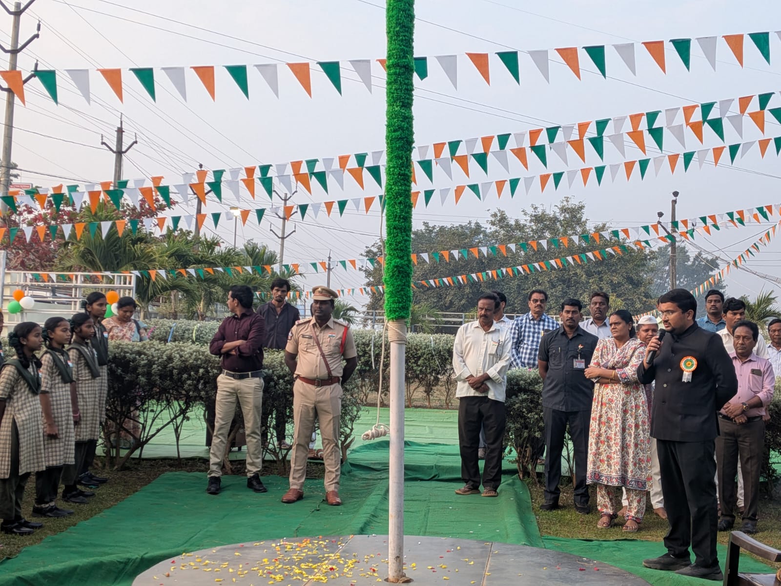 న్యూస్ తెలుగు /చింతూరు : భారతదేశ 77వ గణతంత్ర దినోత్సవాన్ని పురస్కరించుకొని, ఐటిడిఎ చింతూరు ఆధ్వర్యంలో గణతంత్ర దినోత్సవ వేడుకలు నిర్వహించినట్లు ప్రాజెక్ట్ ఆఫీసర్ శుభమ్ నొక్వాల్ తెలిపారు.ఈ సందర్భంగా భారత రాజ్యాంగం ప్రతిపాదించిన స్వేచ్ఛ, సమానత్వం, సోదరభావం, న్యాయం వంటి విలువలను ప్రతి పౌరుడు తన దైనందిన జీవితంలో ఆచరణలో పెట్టాలని ప్రాజెక్ట్ ఆఫీసర్ పిలుపునిచ్చారు. అలాగే గిరిజన ప్రాంతాల సమగ్ర అభివృద్ధి కోసం ప్రభుత్వం అమలు చేస్తున్న వివిధ సంక్షేమ పథకాలు అర్హులైన ప్రతి ఒక్కరికీ అందే విధంగా ఐటిడిఎ చింతూరు నిరంతరం కృషి చేస్తోందని పేర్కొన్నారు.పోలవరం ప్రాజెక్టు కారణంగా నష్టపోతున్న నిర్వాసితులకు వీలైనంత త్వరగా ఆర్ & ఆర్ ప్యాకేజీ, ఆర్ & ఆర్ కాలనీల నిర్మాణం, భూ నష్ట పరిహారం, అలాగే గిరిజనులకు భూమికి భూమి వంటి ప్రయోజనాలు అందించే విధంగా అవసరమైన చర్యలు చేపడతామని ఈ సందర్భంగా తెలిపారు.గిరిజనుల విద్య, ఆరోగ్యం, ఉపాధి అవకాశాలు, మౌలిక వసతుల అభివృద్ధి దిశగా ఐటిడిఎ చింతూరు నిరంతరం కృషి చేస్తోందని పేర్కొంటూ, ఈ గణతంత్ర దినోత్సవం సందర్భంగా ప్రతి ఒక్కరూ దేశాభివృద్ధిలో భాగస్వాములు కావాలని కోరారు.ఈ కార్యక్రమంలో ఐటీడీఏ ఏపీవో రామ తులసి , ఐటిడిఎ డి ఈ మురళి డిప్యూటీ డి ఎం అండ్ హెచ్ ఓ పుల్లయ్య , జిసిసి మేనేజర్ సుబ్రమణ్యం ,యస్ ఐ రమేష్ తో పాటు ఇతర అధికారులు పాల్గొన్నారు.(Story : ఘనంగా చింతూరు ఐటిడిఎ లో గణతంత్ర దినోత్సవం )