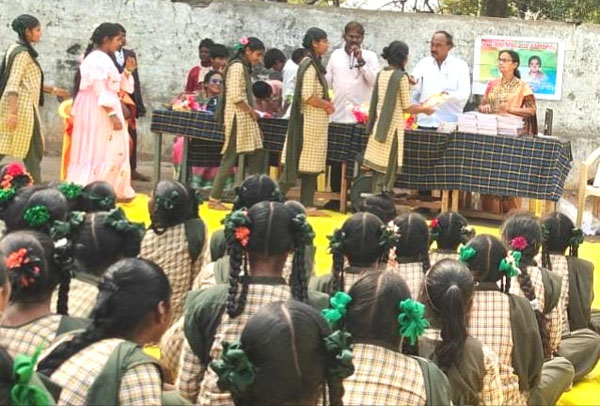న్యూస్ తెలుగు / వినుకొండ : ఎన్ఎస్పీ కాలనీలోని 04 వ వార్డు జడ్పీహెచ్ హైస్కూల్ లో 7, 8, 9 తరగతుల విద్యార్థులకు జి. కమలారామ్ దంపతులు వారి తల్లిదండ్రులైన జి. వెంకమ్మ, రంగయ్య మెమోరియల్ ట్రస్టు ఆధ్వర్యంలో మంగళవారం పాఠశాల విద్యార్థులకు పెన్నులను,నోట్ పుస్తకాలను అందజేశారు. ఈ సందర్బంగా పాఠశాల హెచ్ఎం వీరప్పయ్య తెలిపారు. ఈ సందర్భంగా పేద విద్యార్థులకు పుస్తకాలు, పెన్నులు అందించినందుకు కమలారామ్ దంపతులకు హెచ్ఎం ధన్యవాదాలు తెలిపారు. ఈ కార్యక్రమంలో కమలారామ్, శ్రీమతి కమలాదేవి, ఉపాధ్యాయిని ఉపాధ్యాయులు పద్మజ, రాంబాబు, రాధాకృష్ణ, ఎలీషా పాల్గొన్నారు. (Story:విద్యార్థులకు నోట్ బుక్స్, పెన్నులు వితరణ)