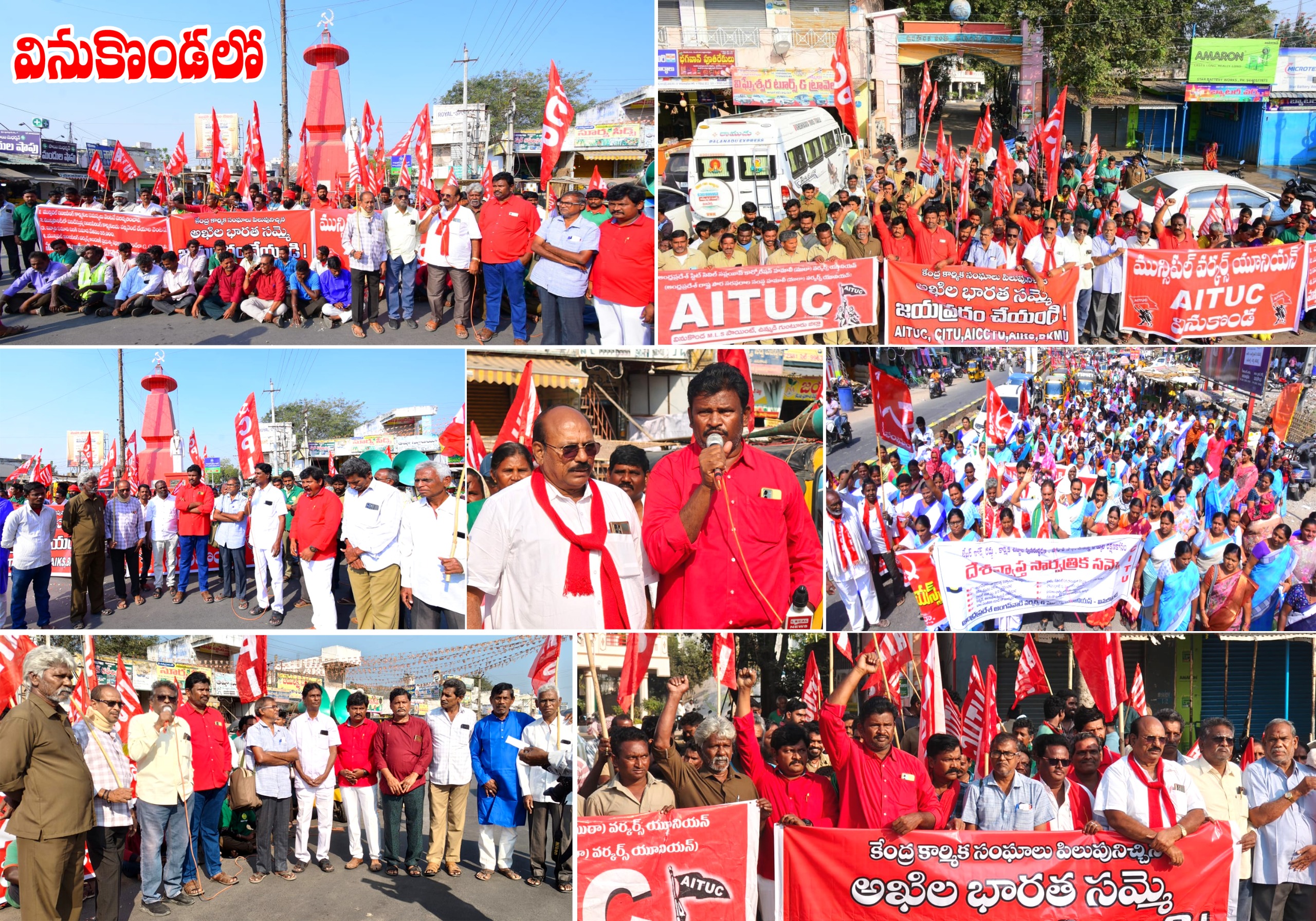 దేశవ్యాప్త సార్వత్రిక సమ్మె పల్నాడు జిల్లా వినుకొండలో విజయవంతం.