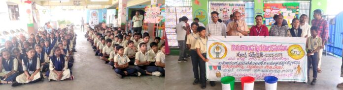 న్యూస్ తెలుగు/వినుకొండ : స్వచ్ఛ సర్వేక్షన్ 2025-26లో వినుకొండ మున్సిపాలిటీకి ఉత్తమ ర్యాంక్ సాధించే లక్ష్యంతో శుక్రవారం స్థానిక నారాయణ టెక్నో స్కూల్లో విద్యార్థులకు అవగాహన సదస్సు నిర్వహించారు. మున్సిపల్ కమిషనర్ కె. శివరాం ప్రసాద్ ఆధ్వర్యంలో ఈ కార్యక్రమం జరిగింది. తడి, పొడి, హానికర వ్యర్థాలను వేరు చేయాలని, తడి చెత్తతో కంపోస్ట్ తయారు చేసే విధానాన్ని కమిషనర్ విద్యార్థులకు వివరించారు. సింగిల్ యూజ్ ప్లాస్టిక్ కవర్లలో వేడి ఆహారం తెచ్చుకుంటే క్యాన్సర్ వంటి అనారోగ్య సమస్యలు వస్తాయని, వాటికి బదులు క్లాత్, జ్యూట్ బ్యాగులు, స్టీల్ బాక్సులు వాడాలని సూచించారు. బహిరంగ ప్రదేశాల్లో, కాలువల్లో చెత్త వేయకుండా ‘విజువల్ క్లీన్ వినుకొండ’ సాధనకు తోడ్పడాలని పిలుపునిచ్చారు.శానిటరీ ఇన్స్పెక్టర్ ఇస్మాయిల్ మాట్లాడుతూ.. విద్యార్థులకు వ్యక్తిగత పరిశుభ్రత, హ్యాండ్ వాష్ ప్రాముఖ్యతను వివరించారు. ఈ కార్యక్రమంలో ఏఐఐఎల్ఎస్జి డిస్ట్రిక్ట్ కోఆర్డినేటర్ శివ పార్వతి, నారాయణ టెక్నో స్కూల్ ప్రిన్సిపాల్ మంగళపూడి హెచ్.వి. రెడ్డి, శానిటరీ సెక్రటరీలు, మేస్త్రీలు, ఉపాధ్యాయులు, విద్యార్థులు తదితరులు పాల్గొన్నారు.(Story : స్వచ్ఛ సర్వేక్షన్లో ఉత్తమ ర్యాంకే లక్ష్యం )