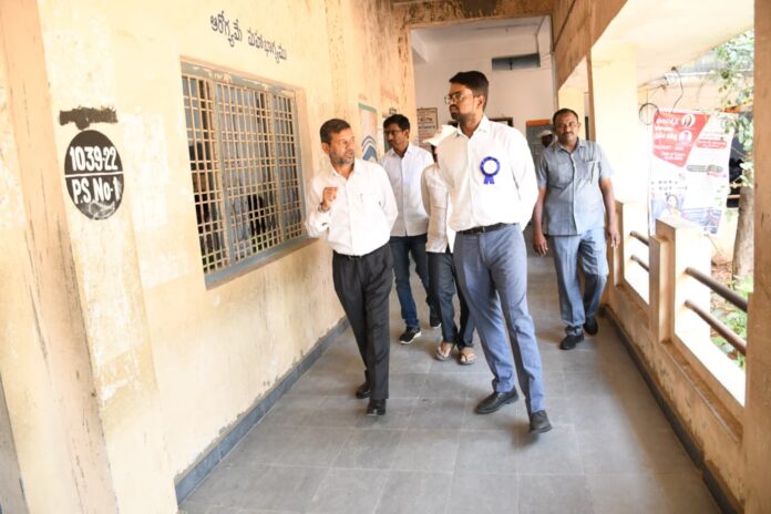 న్యూస్ తెలుగు/వనపర్తి : జిల్లాలో పదో తరగతి పరీక్షలు ప్రశాంత వాతావరణంలో నిర్వహించేలా చర్యలు తీసుకోవాలని జిల్లా కలెక్టర్ ఆదర్శ్ సురభి ఆదేశించారు. బుధవారం జిల్లా కలెక్టర్ వనపర్తి పట్టణంలోని ప్రభుత్వ బాలికల ఉన్నత పాఠశాలలో ఏర్పాటు చేసిన ఎస్సెస్సీ పరీక్ష కేంద్రాన్ని తనిఖీ చేశారు. ఈ సందర్భంగా పరీక్షలు రాస్తున్న విధానాన్ని పరిశీలించారు. పరీక్ష కేంద్రంలో విద్యార్థుల హాజరు గురించి కలెక్టర్ విచారణ చేయగా, మొత్తం 242 మంది విద్యార్థులకు గానూ, బుధవారం నిర్వహించిన హిందీ పరీక్షకు 242 మంది హాజరైనట్లు అధికారులు తెలిపారు. ఈ సందర్భంగా కలెక్టర్ పరీక్షల నిర్వహణపై అధికారులకు కీలక సూచనలు చేశారు. పరీక్ష కేంద్రంలోకి ఎటువంటి మొబైల్ ఫోన్లు అనుమతించరాదని స్పష్టం చేశారు. విద్యార్థుల తనిఖీలు తప్పనిసరిగా నిర్వహించాలని, పరీక్షలు పారదర్శకంగా, ప్రశాంత వాతావరణంలో నిర్వహించేలా చర్యలు తీసుకోవాలని ఆదేశించారు.అదేవిధంగా పరీక్షల నిర్వహణలో ఎటువంటి తప్పులు చోటుచేసుకోకుండా అధికారులు అప్రమత్తంగా ఉండాలని, విద్యార్థులకు ఎలాంటి ఇబ్బందులు కలగకుండా అన్ని ఏర్పాట్లు చేయాలని సూచించారు. జిల్లా విద్యాశాఖ అధికారి అబ్దుల్ ఘని, తహసీల్దార్ రమేష్ రెడ్డి, పరీక్ష కేంద్రం సిబ్బంది, ఇతర అధికారులు తదితరులు కలెక్టర్ వెంట ఉన్నారు.(Story : జిల్లాలో పదో తరగతి పరీక్షలు ప్రశాంత వాతావరణంలో నిర్వహించేలా చర్యలు తీసుకోవాలి)