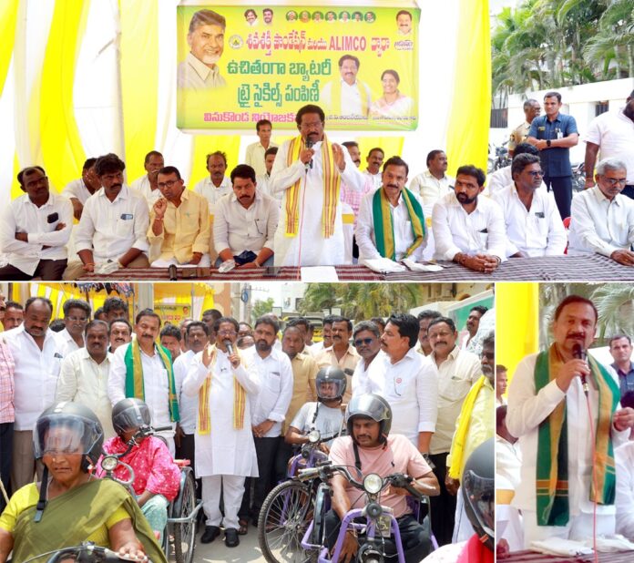 శివశక్తి ఆధ్వర్యంలో 20 ట్రై సైకిల్ పంపిణీ చేసిన చీఫ్ విప్ జీవి