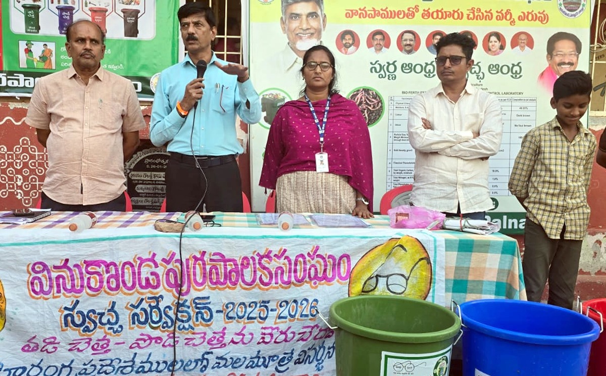 మున్సిపల్ కమిషనర్ శివరామ ప్రసాద్ మాట్లాడుతూ.. చెత్తను తడి, పొడి, హానికర వ్యర్థాలుగా వేరు చేయాలని, వినుకొండను ప్లాస్టిక్ రహిత పట్టణంగా మార్చేందుకు ప్రతి ఒక్కరూ కృషి చేయాలని విద్యార్థులకు సూచించారు. అనంతరం వారితో ‘స్వచ్ఛ ప్రతిజ్ఞ’ చేయించారు. ఈ కార్యక్రమంలో శానిటరీ ఇన్‌స్పెక్టర్ ఇస్మాయిల్, ఏఐఐఎల్ఎస్‌జీ కోఆర్డినేటర్ శివ పార్వతి, ఉపాధ్యాయులు, విద్యార్థులు, మున్సిపల్ సిబ్బంది పాల్గొన్నారు.(Story : జీరో వేస్ట్’ ప్రాంగణాలుగా రూపొందాలి….)